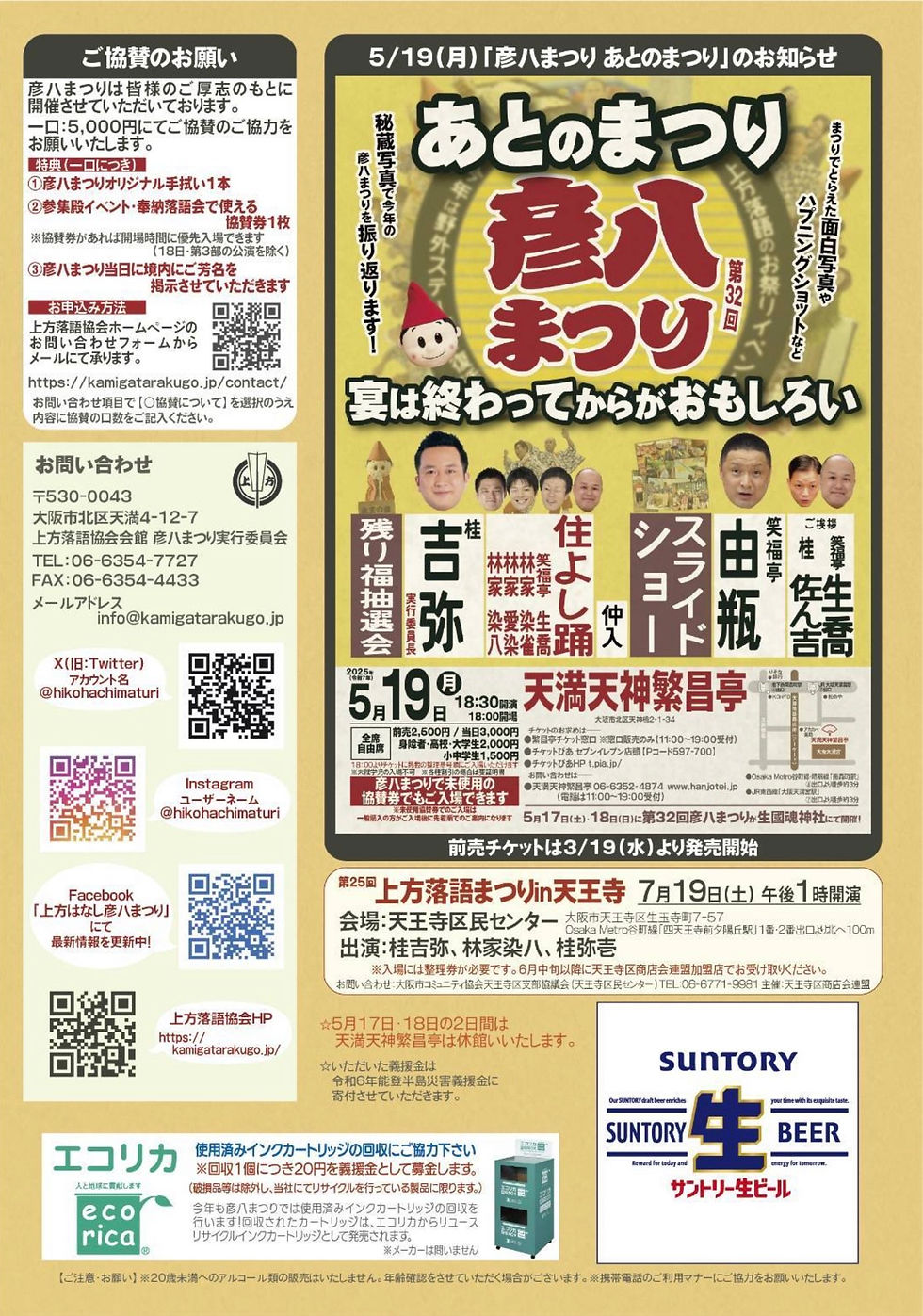 5月18日(月)あとのまつり 第32回彦八まつり~宴は終わってからがおもしろい~ 天満天神・繁昌亭 開演18時30分